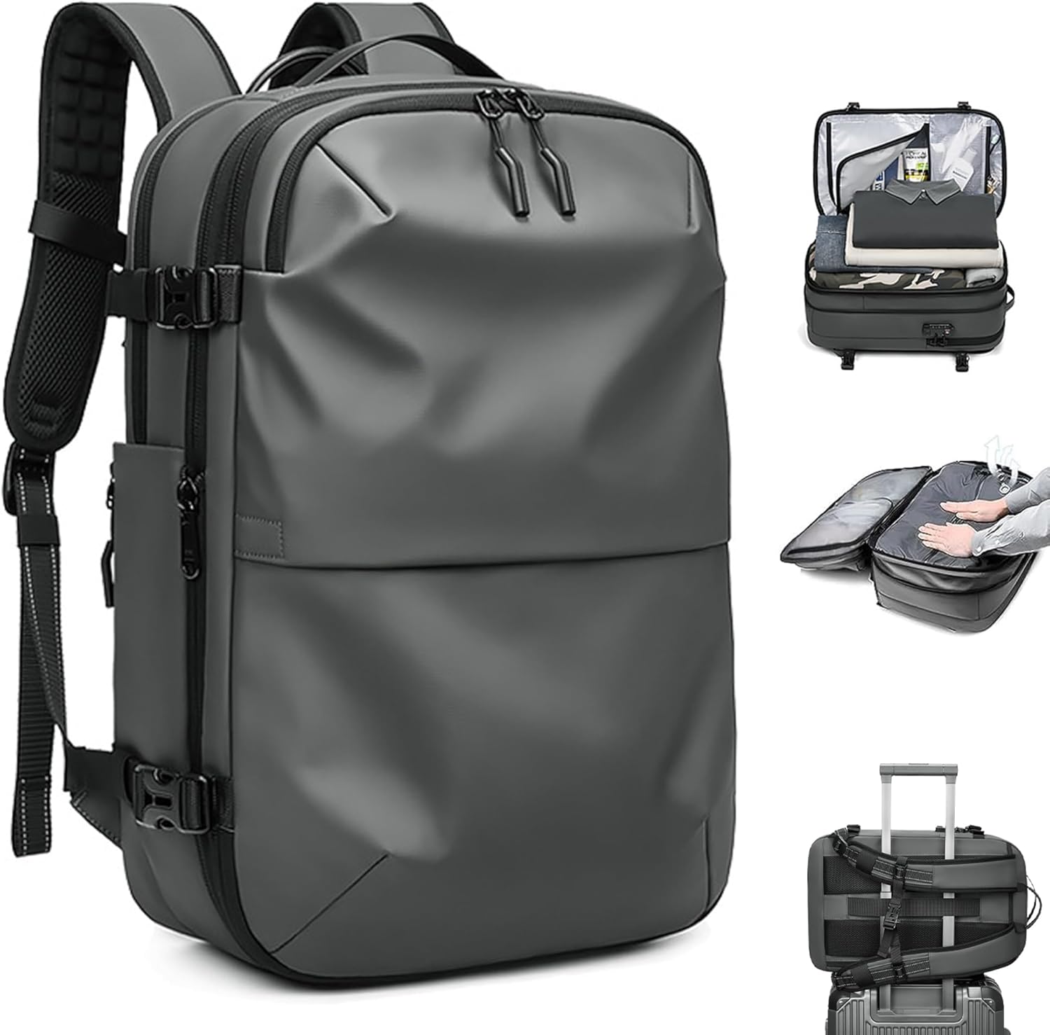 Aeropack™ is a vacuum compression travel backpack that lets you pack more in less space, keeping everything organized, protected, and carry-on ready.